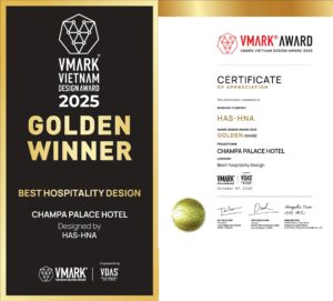 Ngày 7/10, tại khách sạn JW Marriott Saigon (TP. Hồ Chí Minh), dự án Champasak Palace Hotel – mà Hoàng Nhật Anh Architects và HAS Architecture thiết kế – đã được Ban tổ chức VMARK AWARD trao giải “Thiết kế khách sạn tốt nhất” (Best Hospitality Design) năm 2025.